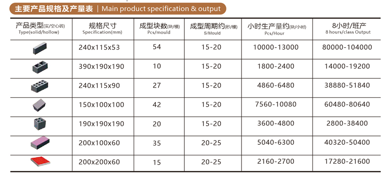 | 磚數量(塊/8h) | 23562-32400 | 21KG/塊 |